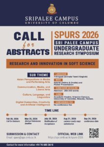 JOIN THIS EVENT Start September 24, 2026 - 8:30 am End September 24, 2026 - 4:30 pm Address Sri Palee Campus, University of Colombo View map + GOOGLE CALENDAR + ICAL IMPORT MORE DETAIL Website https://spc.cmb.ac.lk/urs_2026/ Email spurs@spc.cmb.ac.lk BUY NOW