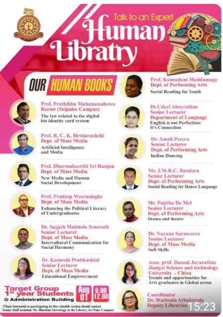 At Sri Palee Campus, the Human Library fosters interactive learning, strengthens reader engagement, and enhances community dialogue. It supports our mission to create spaces where students, faculty, and staff can connect, share experiences, and expand their perspectives in a respectful and inclusive environment, cultivating a sense of belonging and collective growth.